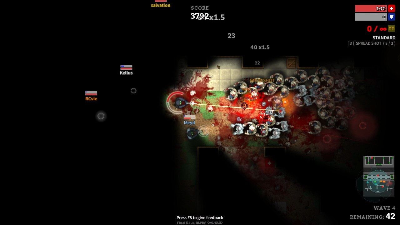 Final Days (2016) is a fast and fun co-op shooter that mixes retro arcade vibes with modern chaos. Even in its early alpha state, it already shows a lot of promise, with intense battles against hordes of mutants and smooth multiplayer action. If you enjoy teamwork and quick, challenging gameplay, this game is worth trying.