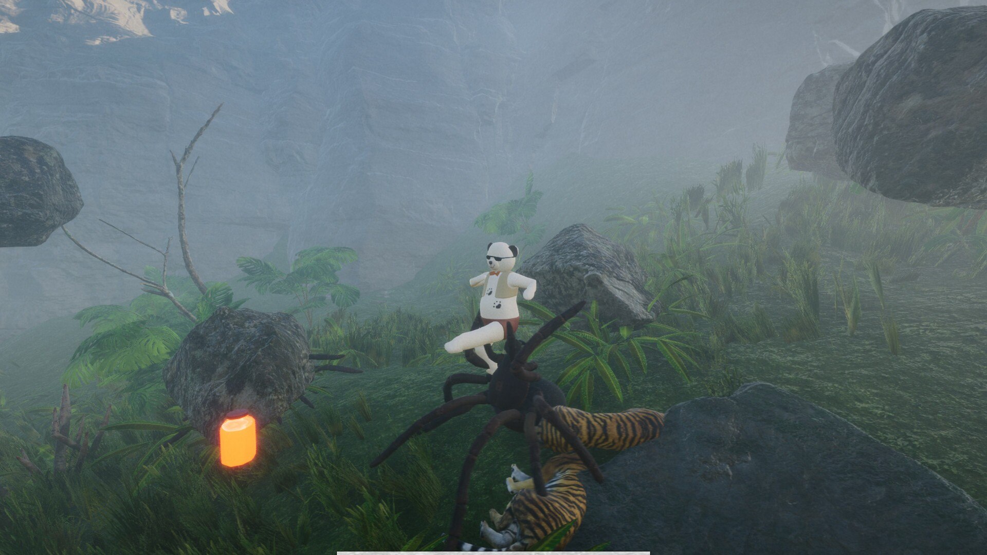 - Enemy Encounters: Players face large spiders, hungry tigers, and other hostile creatures.